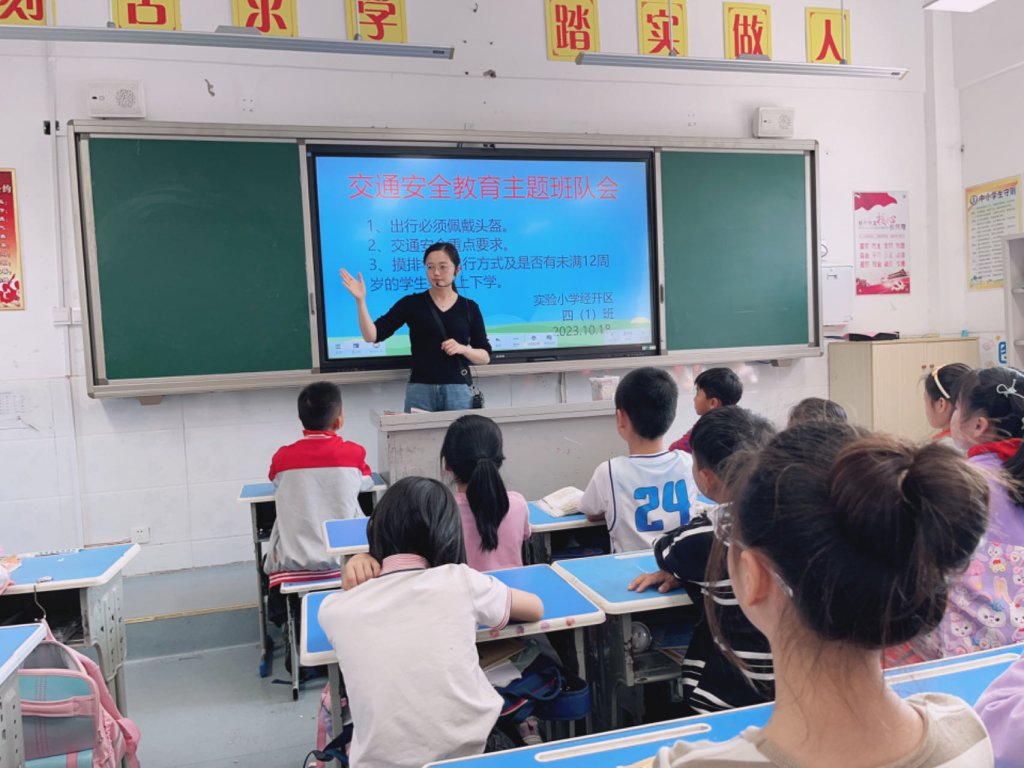 ~ “国旗下讲话”和主题班队会上,大队辅导员、各班班主任通过讲解电动车、摩托车的特殊结构;骑乘人员在有防护和无防护状态下遭遇交通事故的受伤概率对比;深入讲授佩戴安全头盔的重要作用;组织学生围绕正确佩戴安全头盔的好处展开讨论等,使交通安全意识入脑、入心,让佩戴安全头盔乘车出行化作全体学生的思想自觉和行动自觉,并以“小手拉大手”的方式在广大家长中积极传播安全出行、文明出行正能量。