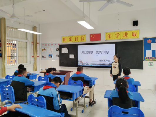 校长谢庆贵进行了国旗下讲话,带领大家了解世界粮食日,并倡导所有师生积极营造“光盘行动,文明就餐”的浓烈氛围。各班开展了“反对浪费、崇尚节约”的主题教育活动,通过主题班会教育进一步让孩子们了解粮食的重要性,深深感受到粮食的可贵。