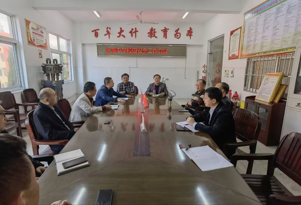 ~ 学校召开校园安全工作专题会议,校长室成员、全体班主任、安全办负责人等参加会议。董志友校长在会上传达了县教体局安全工作会议精神,就学校交通安全工作进行了专门部署安排。会议对早中晚校门口非教学时段值班做了强调要求:值班领导要提前到岗,并劝导、教育接送孩子的家长要正确佩戴头盔,将电瓶车有序停放在安全区域。