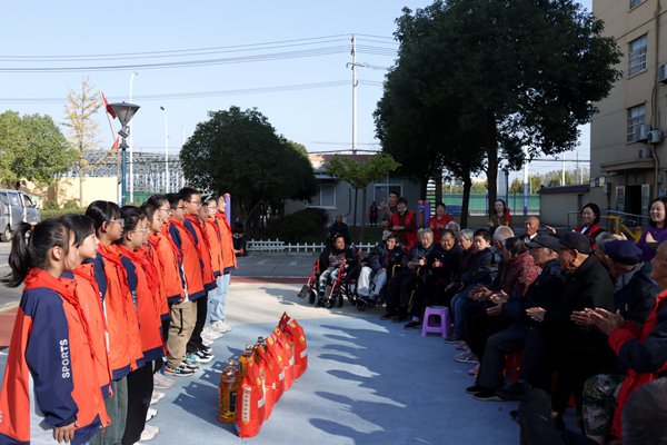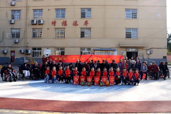 ~ 下午,少先队员们来到了定远县社会福利院慰问,为老人们送来米、面、油等生活用品,带来了香蕉等水果。队员们为福利院的爷爷奶奶们演唱了《中华人民共和国国歌》和《中国少年先锋队队歌》,并祝福福利院的爷爷奶奶重阳节快乐,身体健康,万事如意。老人们在表演中积极鼓掌,表示感谢!