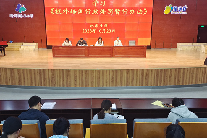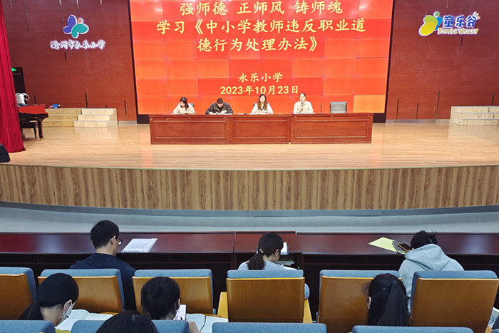 ~ 为严格落实“双减”政策,进一步提高教师的师德水平,引导教师以德立身、以德施教、以德育德,打造高质量的师资队伍,10月23日,滁州市永乐小学召开了主题为“强师德 正师风 铸师魂”师德师风警示教育会。会议由该校副校长张莉莉主持,全体教师参加了教育会。