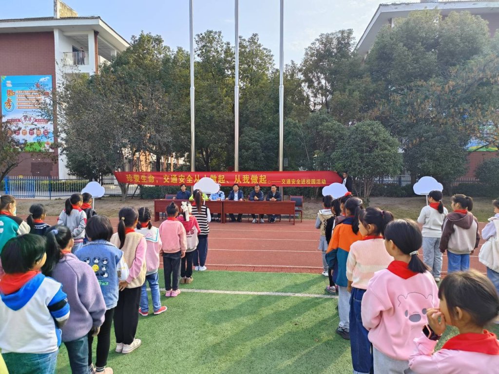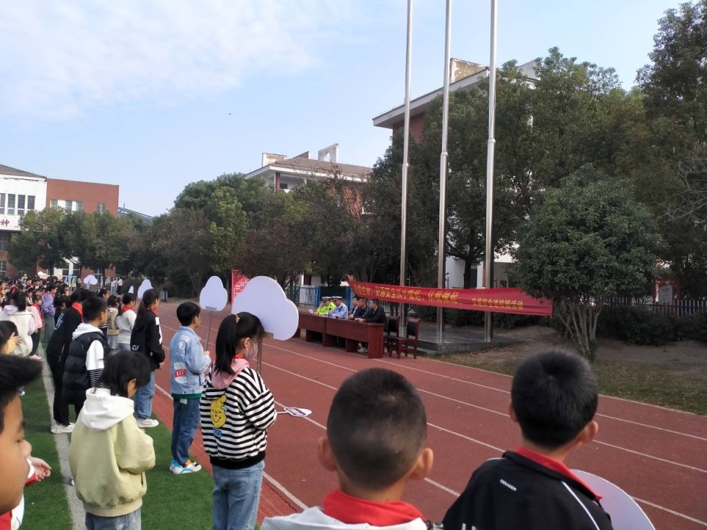 ~ 为进一步增强广大师生的交通安全法规意识和安全文明意识,教育学生珍爱生命,拒绝违章,严防道路安全事故,打造平安校园,10月24日,定远县炉桥镇第一小学教育集团邀请定远县公安局炉桥交通巡警大队王队长和穆队长来校进行交通安全知识宣传。
