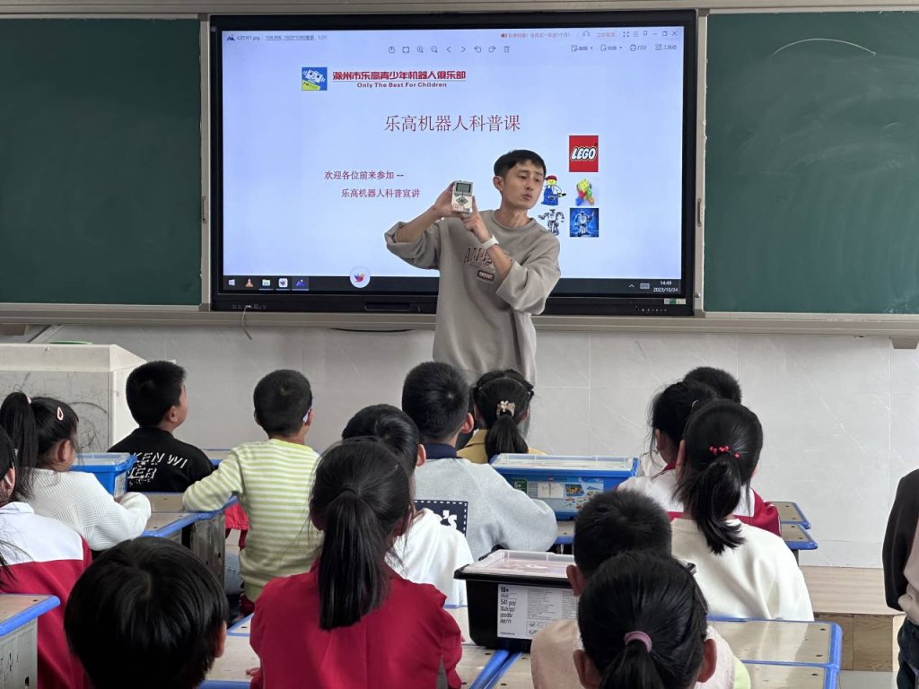 在机器人科普课上,科普讲解员给同学们带来了一堂“乐高机器人科普课”,培养了学生对机器人编程方面的兴趣。