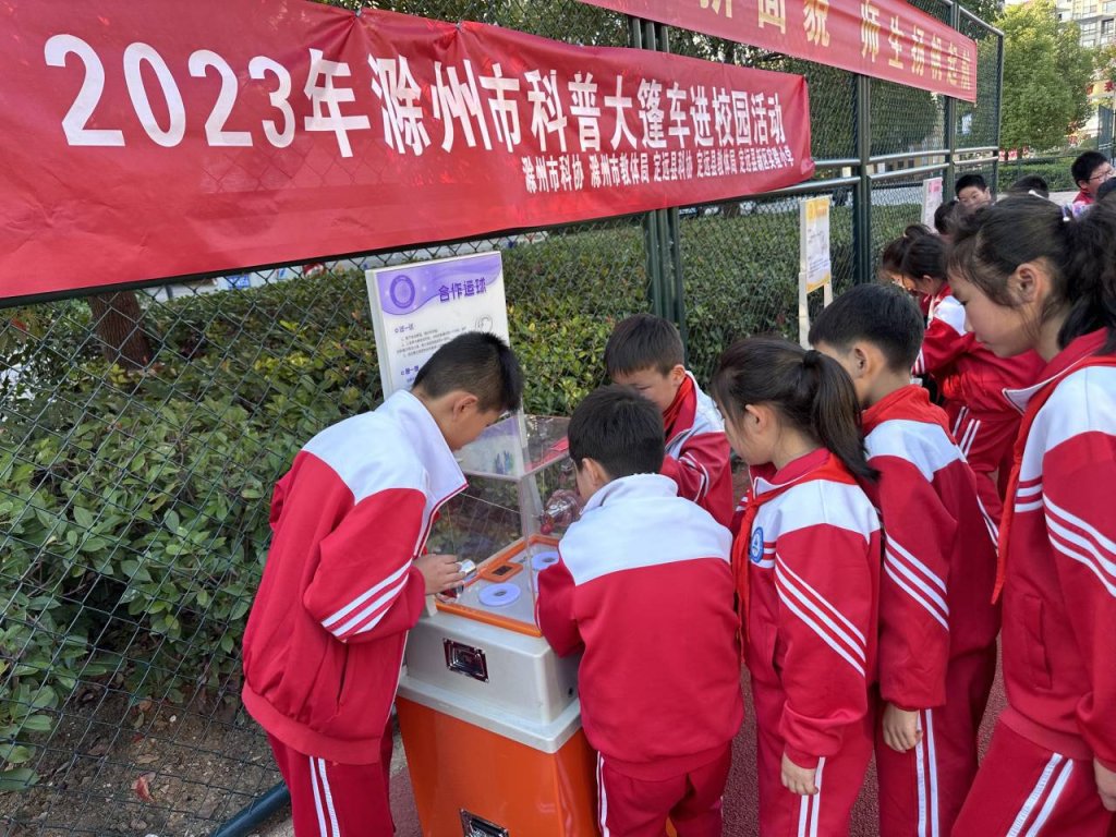 为贯彻党的二十大精神,弘扬科学家精神,让学生感受到科学的神奇,激发学生“学科学、爱科学、用科学”的热情,10月24日下午,由滁州市科协、滁州市教体局、定远县科协、定远县教体局共同举办的“科普大篷车进校园”活动,走进集团新区实验小学,为孩子们送来了一份“科技”大餐。此次活动分为科普讲座、机器人科普课、科普品展览三个环节,同学们乐在其中、学在其中。