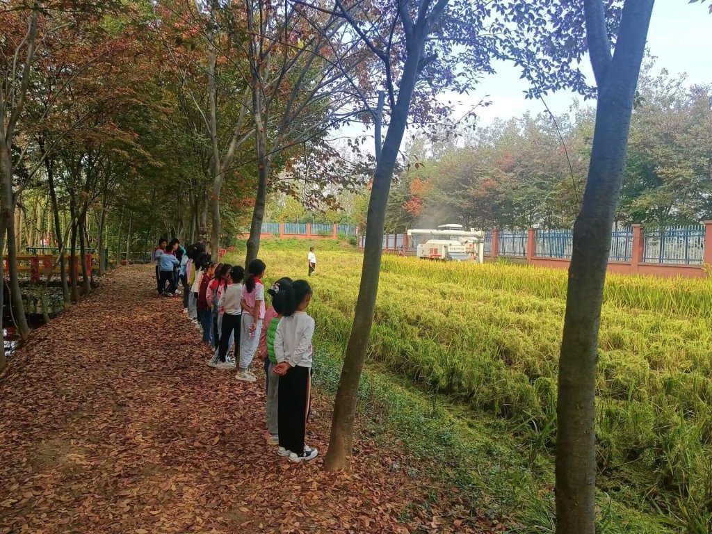 ~ 金秋送爽,稻穗飘香。隆隆的收割机声中,定远县天河小学校内劳动实践基地“主题试验田”拉开了收获的序幕。