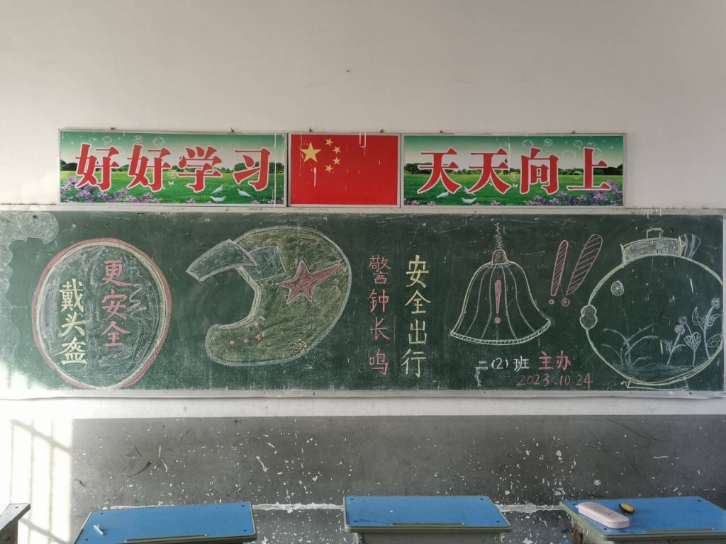~ 为丰富校园文化,增强学生交通安全意识,更好的将“佩戴头盔,安全出行”的观念深入人心,近日,定远县朱湾小学组织开展了交通安全宣传为主题的板报评比活动。