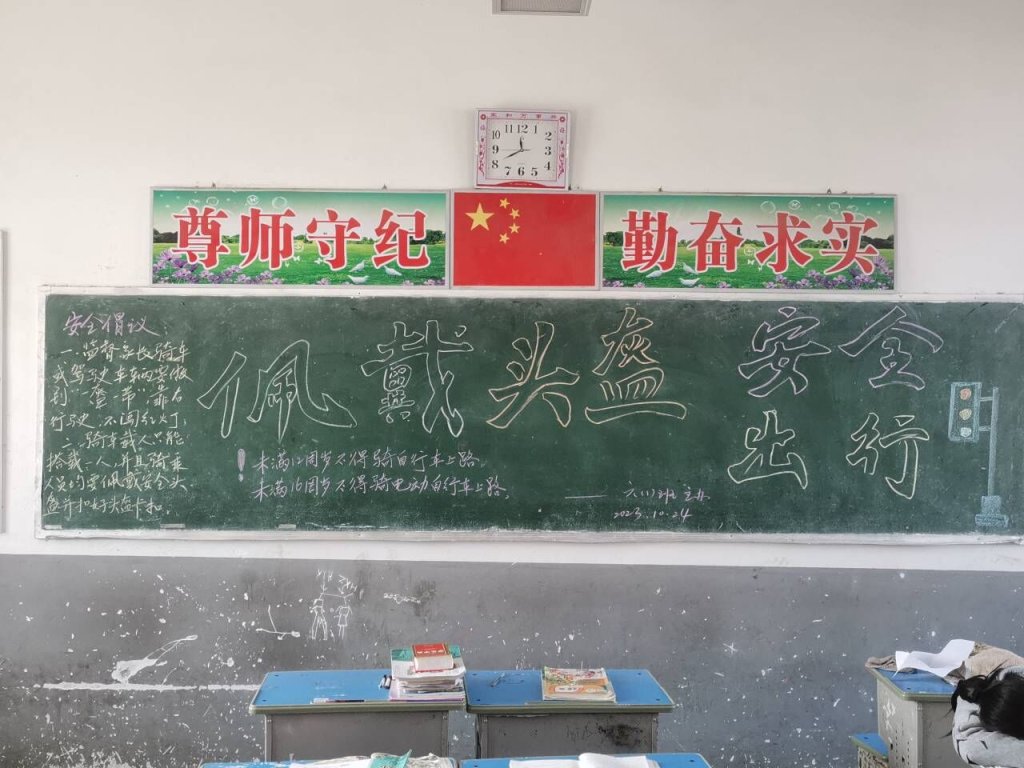 ~ 各班精心设计,通过漫画、标语等多种形式,紧扣主题,绘制了不同风格的板报。通过此次板报评比活动,为校园文化增添了一道亮丽的风景线,同时有效宣传了交通安全知识,让学生认识到佩戴头盔的重要性,提高学生遵守交通法规的意识。(图文:桂虎宁 审核:杨明)