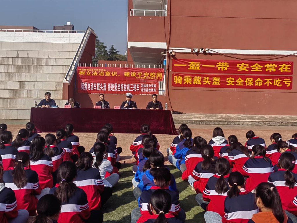 ~ 为进一步加强校园安全教育,增强广大师生的法治意识和安全防范意识,2023年10月26日,定远县公安局交警大队和西城派出所有关同志来到定远县第二初级中学开展“法治进校园”宣传教育活动。该校全体学生和班主任参加了此次活动,活动由副校长王广正主持。