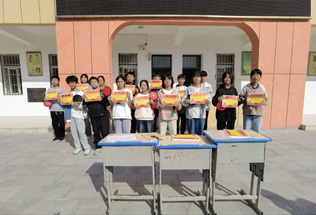 ~ 10月26日上午课间操,定远县永康中学在楼前广场为获奖者颁发奖状奖品,标志着永康中学2023年学生乒乓球赛圆满落幕。