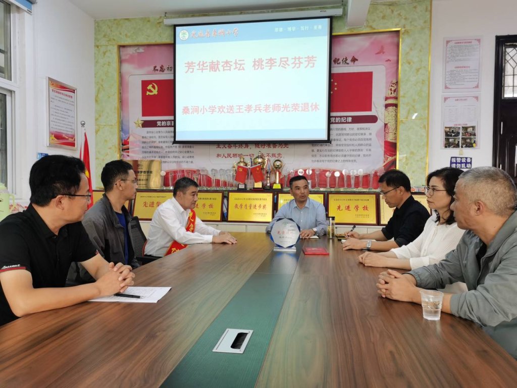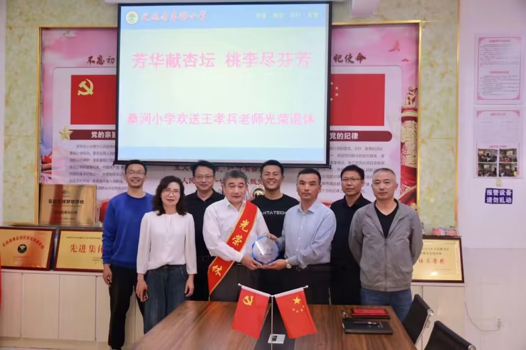 ~ 桑涧小学党支部书记、校长张道胜为王孝兵老师送上荣休纪念品并致辞。张校长和大家一起回顾了王老师从教四十年来辛勤工作的点点滴滴,从村校老师,村小校长,到中心校教导主任,每一个岗位上王老师都兢兢业业。张校长代表学校感谢几十年来他为桑涧教育事业做出的巨大贡献,希望他退休不褪色,始终将桑涧小学党员这面红旗和榜样力量发挥在关键的地方,同时祝愿他退休后的生活依旧丰富多彩,幸福美满!