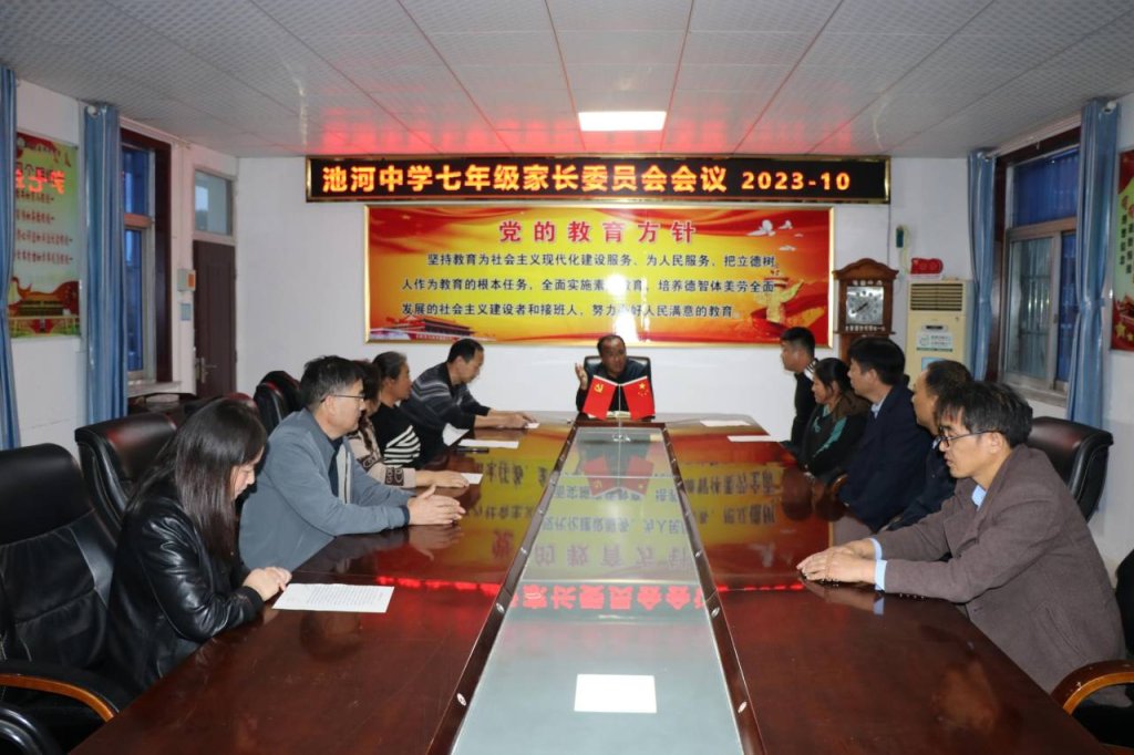 ~ 学生的成长离不开学校教育,更离不开家长的支持和配合。为了进一步加强学校、老师与家长之间的密切联系,增进家长对寄宿制工作的了解,同时更全面地了解自己的孩子在校生活与学习情况, 2023年10月27日,定远县池河中学七年级举行家长委员会成立仪式,学校管理人员、各班家委会代表、班主任参加会议,会议有分管副校长黄祎主持。