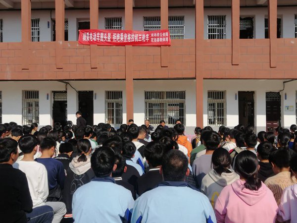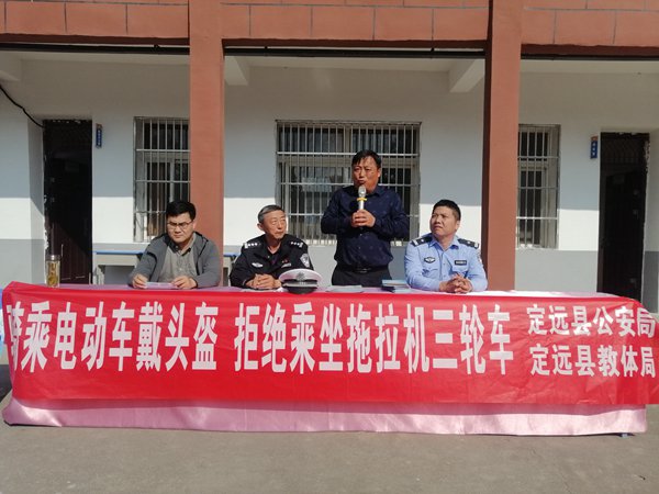 ~ 为加强中小学生交通安全教育,提高中小学生自我保护能力,上好交通安全课,10月31日,定远县交通警察大队深入朱湾初中开展“交通安全知识”及“一盔一带”安全主题教育活动。