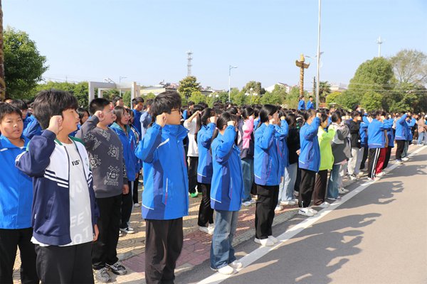 ~ 在秋日明媚的阳光中,伴随着雄壮的国歌声,鲜艳的五星红旗冉冉升起。在场师生整装肃立,面向国旗行注目礼,表达对新时代伟大祖国的衷心祝福以及全体师生昂扬斗志。