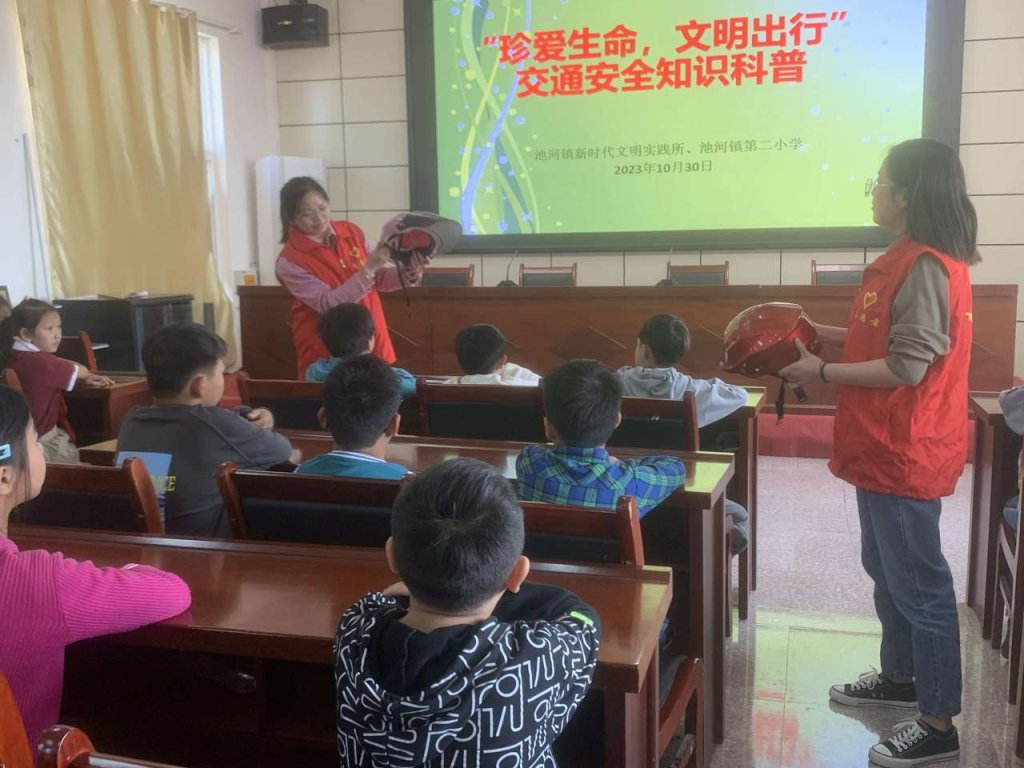 ~ 活动中,池河镇新时代文明实践所的工作人员通过事故案例分析、典型案例向学校教师和学生及部分家长讲解骑乘摩托车、电动车不戴安全头盔,驾驶机动车不系安全带等交通违法行为的危害性,并针对大家提出的各类交通安全问题做了细致解答,提醒广大师生自觉遵守交通法规,安全文明出行。