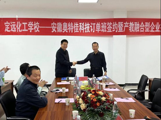 ~ 许孝峰介绍了学校的基本情况、办学特色和发展愿景。他表示,在全面回顾学校发展历史、总结办学经验中我们能够认识到,当前科技日新月异,企业与职业学校合作尤为重要。奥特佳公司作为专注于生产汽车零部件热管理系统的上市公司,在行业内处于领先地位,一直以来都致力于推动技术创新和产业发展,相信通过与奥特佳公司的合作,校企双方将更好地发挥各自优势,实现共赢。订单班签约及开班仪式,不仅是一次简单的仪式,更是双方长期友好合作的开始,是定远化工学校追求技能成才、服务社会的坚定承诺。未来,定远化工学校将继续坚持实施打造“定远化工学校”品牌、保持对口升学亮点、创建A类优质中职学校、创新校企合作模式四项工程,更好地为地方经济建设和社会发展服务。