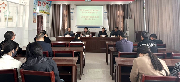 11月6日下午,定远县年家岗小学召开会议,学习宣传《校外培训行政处罚暂行办法》,进一步增强该校教师的法制观念,营造遵纪守法的良好氛围。