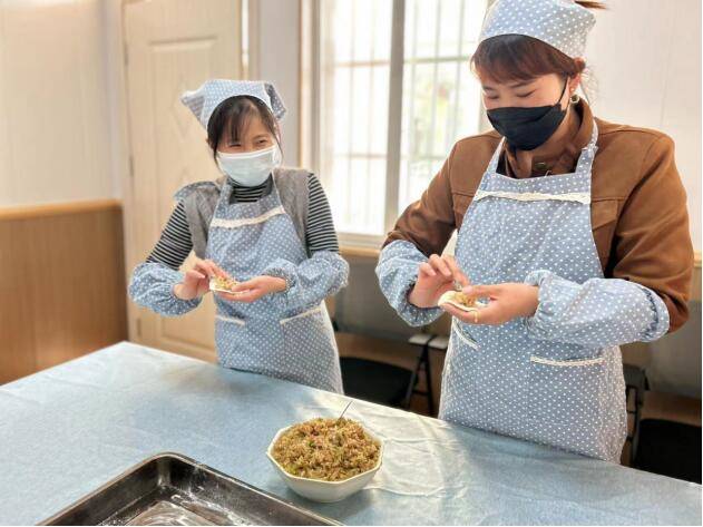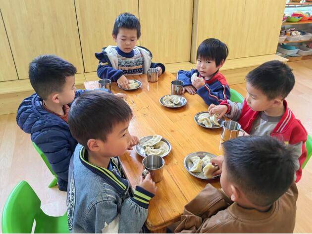 ~ 为了更好的融入及参与幼儿的点心制作,伙委会的家长成员们一起为孩子们包饺子。把暖暖的情包进饺子里,传递给孩子和老师。孩子们说今天的饺子好香啊,有奶奶的味道、妈妈的味道。