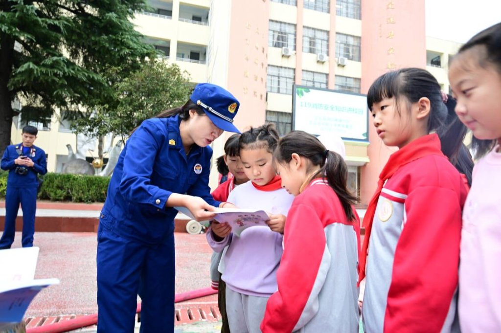 ~ 11月9日上午,定远县消防救援大队组织人员及装备,深入实验小学教育集团曲阳路校区,开展“119消防安全知识进校园”活动,携手共筑校园消防安全“防火墙”。