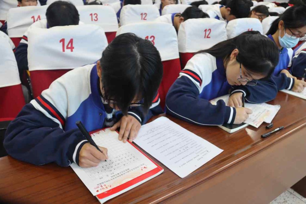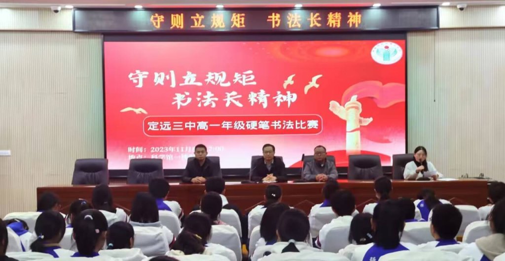 ~ 11月8日下午,定远三中在科学馆报告厅开展了主题为“守则立规矩,书法长精神”硬笔书法比赛活动。校党委委员秦升传出席活动并担任本次比赛的评委。