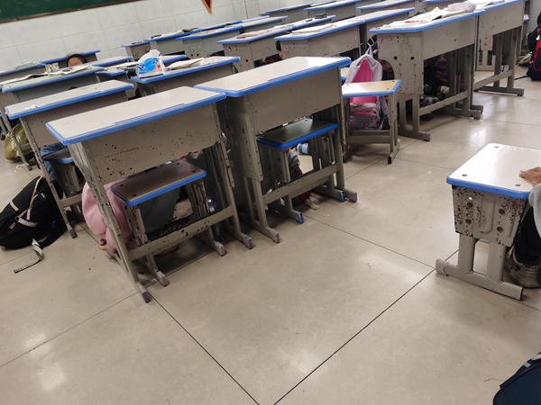 ~ 学校开展消防疏散演练活动中,全校师生都能服从指挥,听从命令,快速、安全、有序疏散。在撤离过程中,没有发生拥挤等现象。1800多名学生从教室撤离到操场(安全区域)仅用时2分钟,安全撤离后,各班清点人数,报告总指挥。