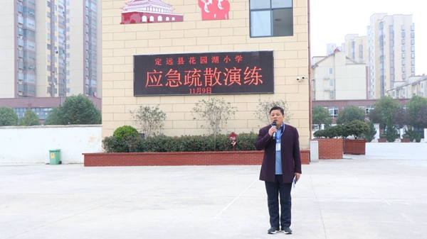 ~ 2023年11月9日,全国消防日来临之际,定远县花园湖小学开展了应急疏散演练活动。