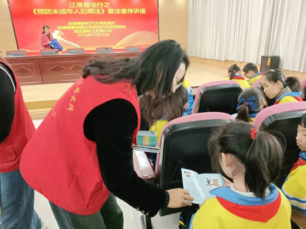 ~ 为加强未成年人的法律意识,提高未成年人自我保护能力,积极营造有利于未成年人成长的良好社会氛围,11月10日上午,定远县定城镇新时代文明实践所、靠城路社区走进职工子弟小学开展江淮普法行之《预防未成年人犯罪法》普法宣传讲座活动。