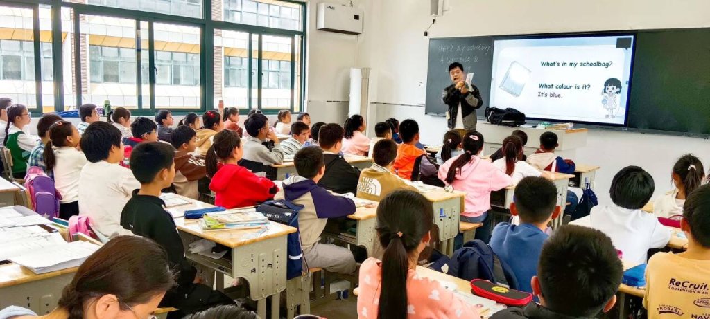 ~ 英语组公开课谢云峰老师带来的四年级上册Unit 2《 My schoolbag Part A 》一课。本节课以欢快活泼的英文歌曲导入,学生跟着歌曲,一边拍手一边唱,充分调动了学生的积极性,既吸引了学生的注意力,又复习了之前所学的单词。谢老师在课堂上讲授和操练单词、句型的时候,方法多样,扎实有效。他的评价用语也丰富多样,以积极的鼓励为主,学生参与度高,课堂氛围轻松愉悦。