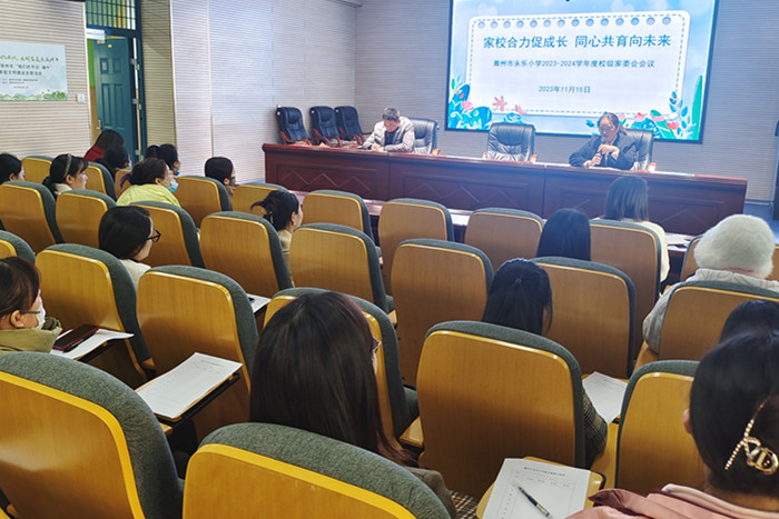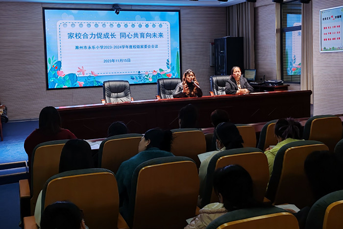 ~ 为严格落实“双减”政策,充分发挥家校协同的育人功能,构建和完善学校、家庭、社会有机结合的教育体系,共同为孩子的健康成长营造良好的育人环境,11月15日下午,滁州市永乐小学在星星学院会议室召开了2023-2024学年度校级家委会会议。该校党总支书记姚杰、副校长张莉莉、方笠及校级家委会成员出席,会议由张莉莉主持。