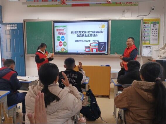 深入校园后,领导们首先来到班级,以主题班会的形式向同学们宣传校园食品安全知识,告诉同学们要管好自己的口,向垃圾食品宣战,同时不吃生冷食品,拒绝“三无”食品。随后,检查组成员在学校领导的陪同下进入食堂,重点对食堂环境卫生和食材新鲜程度等情况进行了详细检查,重点排查食品是否存在变质过期、加工保存是否规范和留样是否完好等。通过现场检查,检查组对蒋集学校的食品安全工作给予了充分肯定。同时检查组领导强调,校园食品安全关系到广大师生的生命健康,学校要本着高度负责任的态度,把食品安全放在心上,落实到行动上,为师生舌尖上的安全保驾护航。(供稿:谢运海 审核:熊文君)