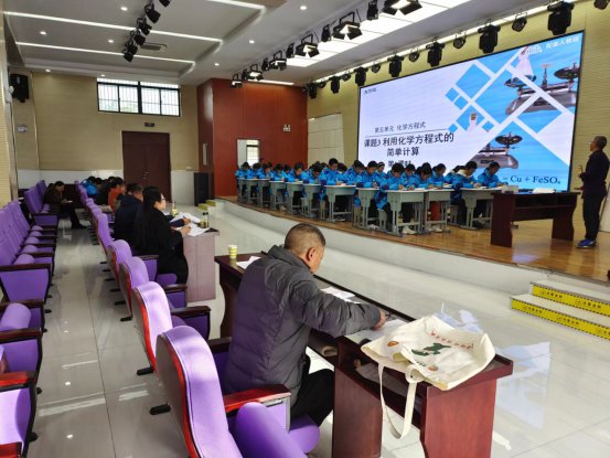 ~ 第2节课是由定远县第三初级中学的应吉顺老师带来的初中化学第五单元课题三《利用化学方程式简单计算》。应老师在简单导入之后,紧紧围绕着落实教学内容,提高学生计算能力这个目标,有序展开教学。应老师以例题展示计算思路:“设—写—标—列—答”,然后让学生练习,最后到学生上黑板展演。一步一个脚印,稳步前进。整节课只见学生低头奋笔疾书,教师穿行期间。