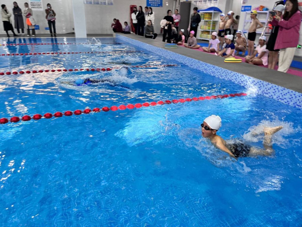~ 团体韵律操和游泳比赛是东兴路小学特色项目。赛前,各班班主任与体育老师密切配合,利用大课间和体育课时间积极组织学生训练韵律操,让每一位同学掌握动作要领、节奏和力度要求;游泳课上,参赛选手积极配合教练的训练节奏,紧张有序地做好每个动作,提升游泳速度。比赛时,操场上,各班学生迈着整齐的步伐,精神饱满、衣着统一、井然有序地进入赛场。伴着音乐,学生们用整齐的动作、响亮的口号、优美的身姿赢得了阵阵掌声。游泳馆内,随着裁判员的一声令下,选手们如同离弦之箭般一头扎进池水中,在泳池里劈波斩浪,尽情展示自己的游泳技能,奋力向25米的终点游去。经过激烈的角逐,评委老师们遵循本项目评分标准,公平公正地评出一、二、三等奖。