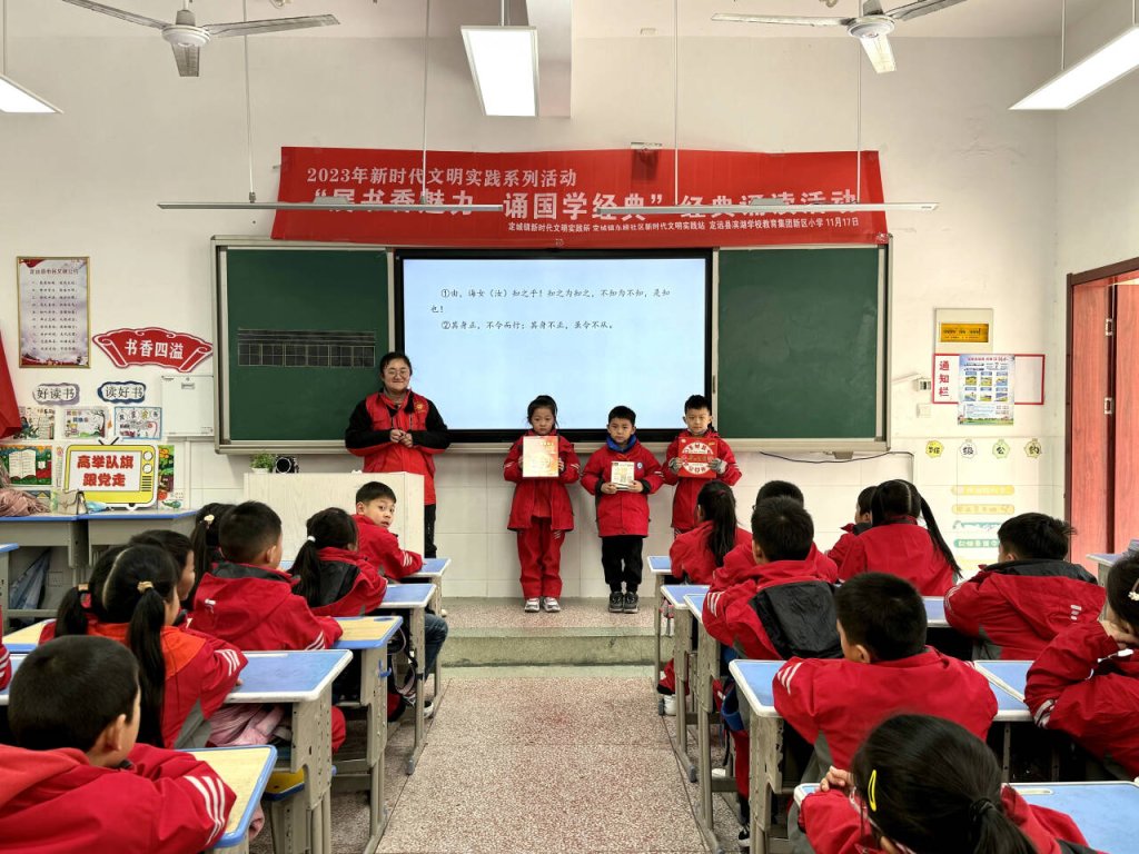 为营造浓厚的书香校园氛围,传承国学文化经典,激发学生的诵读热情,感受中华文化的博大精深,11月17日,定远县新区实验学校教育集团新区实验小学联合定城镇东顾社区新时代文明指导站开展了“展书香魅力 诵国学经典”主题诵读活动。