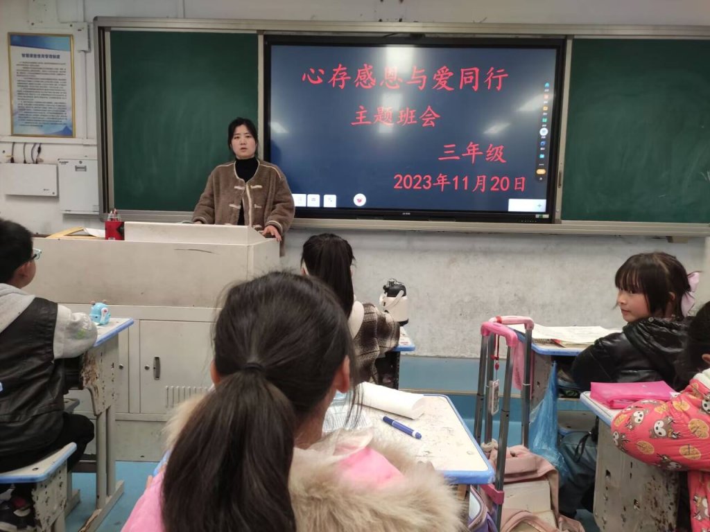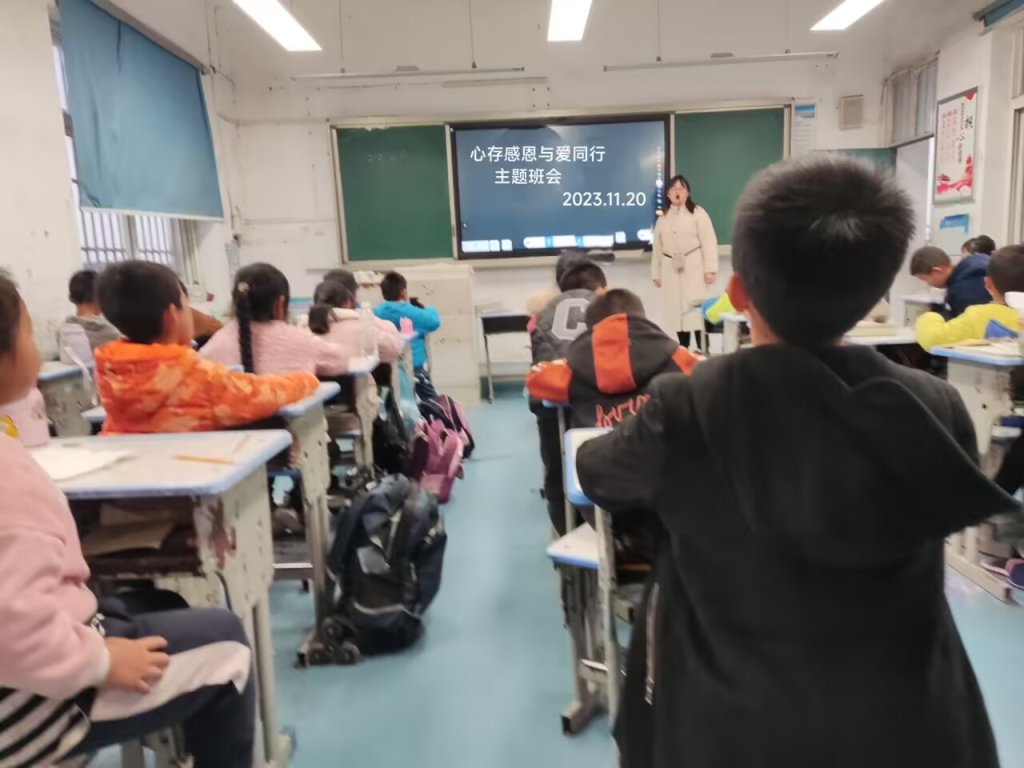 ~ 活动中,各班主任首先向学生们介绍了“感恩节”的来历及设立的意义;然后引导学生们了解父母、老师的辛劳付出与期盼,让他们感受到家人、老师对自己的关爱,告诉同学们要学会感恩,感谢父母,是他们给了我们生命,并抚养我们长大成人,要感谢学校老师,是学校给了我们知识的殿堂,老师变成我们的引路人,让我们的大脑变得更加聪慧。