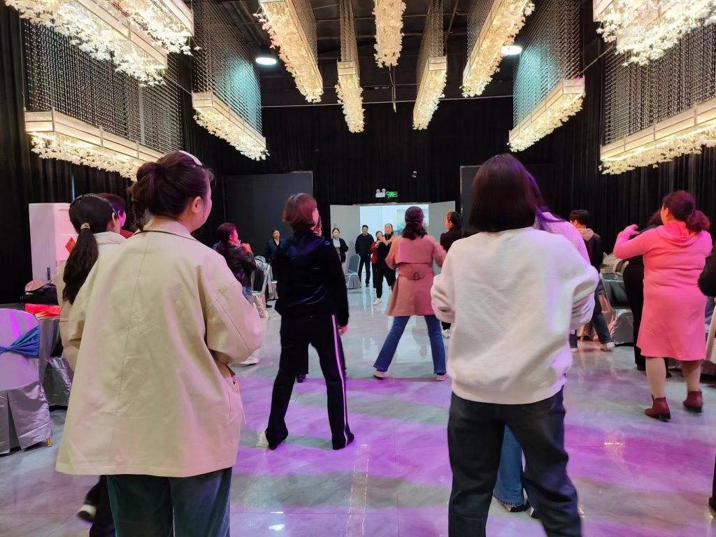 ~ 来自县老年大学的三位广场舞教练老师向学员们展示了广场舞《最美的中国》整套舞蹈动作,先从简单的动作单个教起,再将单个舞蹈动作串联在一起。跟着音乐节拍、舞蹈动作衔接起来,在场的学员们感受到广场舞运动的魅力所在,纷纷加入练习的队伍。