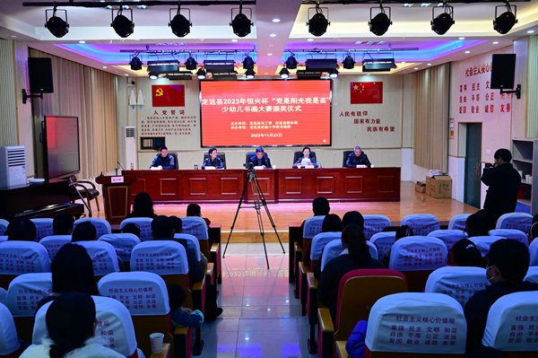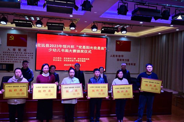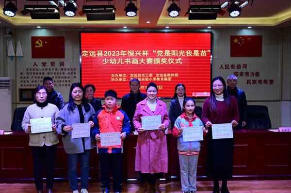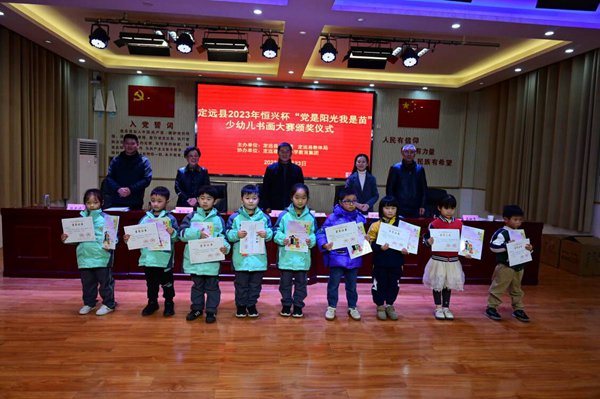 ~ 11月23日下午,定远县2023年恒兴杯“党是阳光我是苗”少幼儿书画大赛颁奖仪式在实验小学教育集团曲阳路校区举行。县关工委常务副主任王秀平、副主任刘训秀,县教体局关工委主任唐仁凤、常务副主任孟献贵,实验小学党总支书记、校长陈恩源等出席颁奖仪式,王秀平主持颁奖仪式。获奖师生,获“组织奖”单位负责人等近200人参加颁奖仪式。