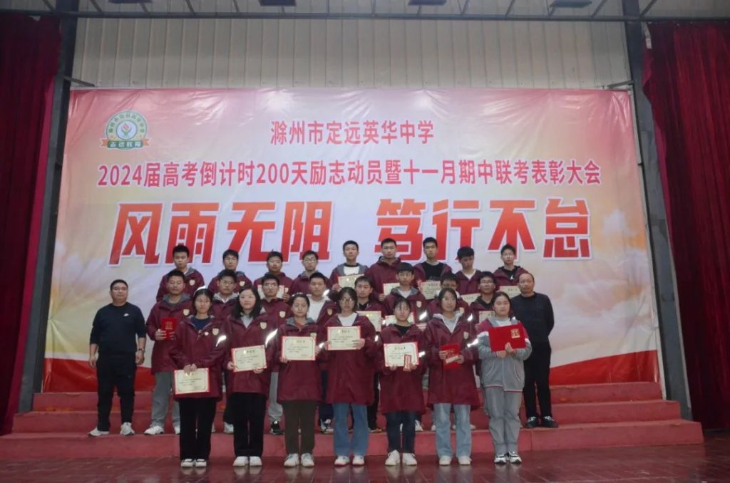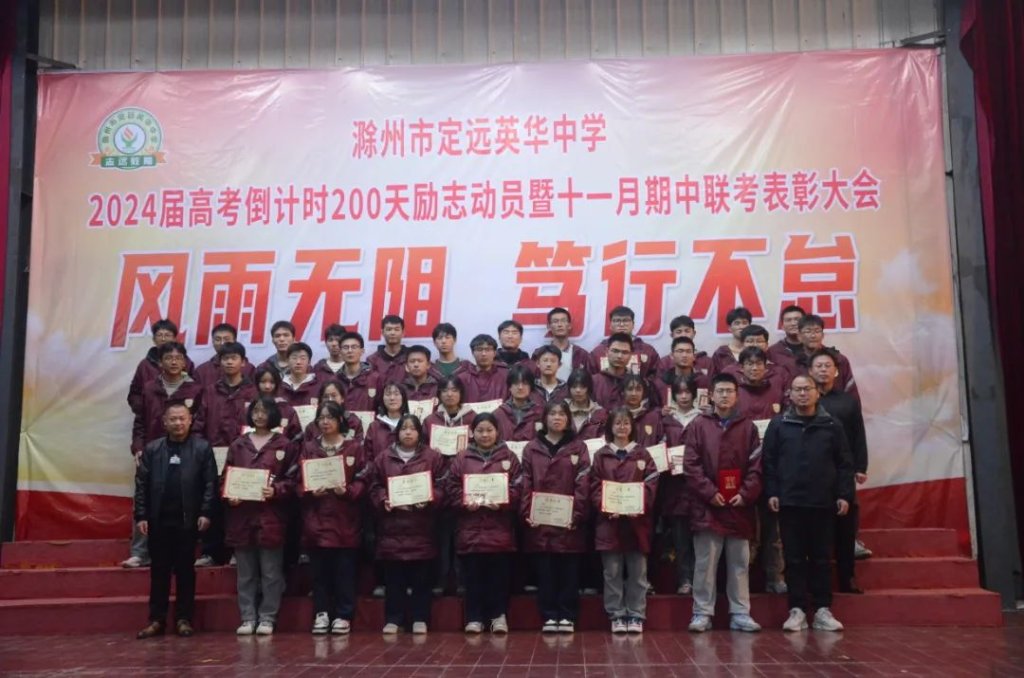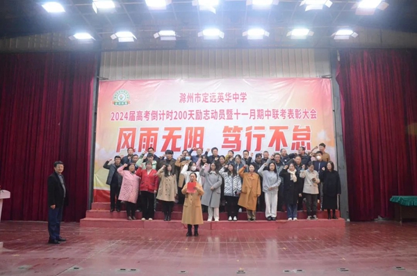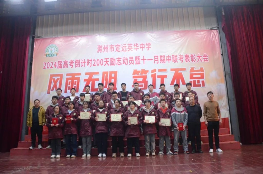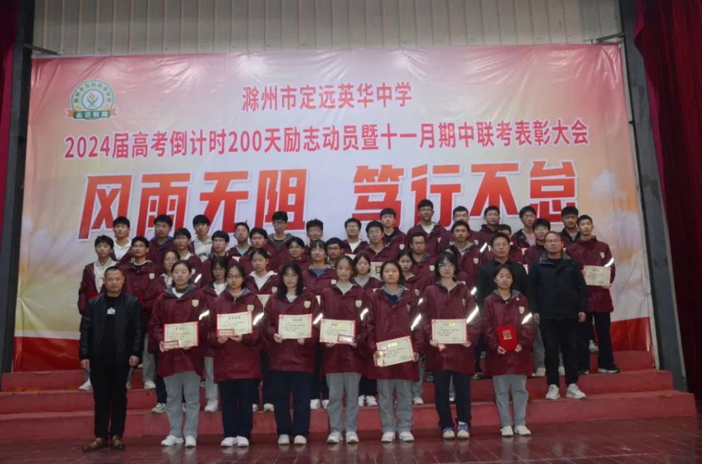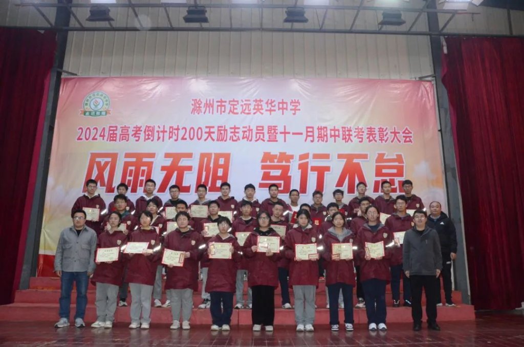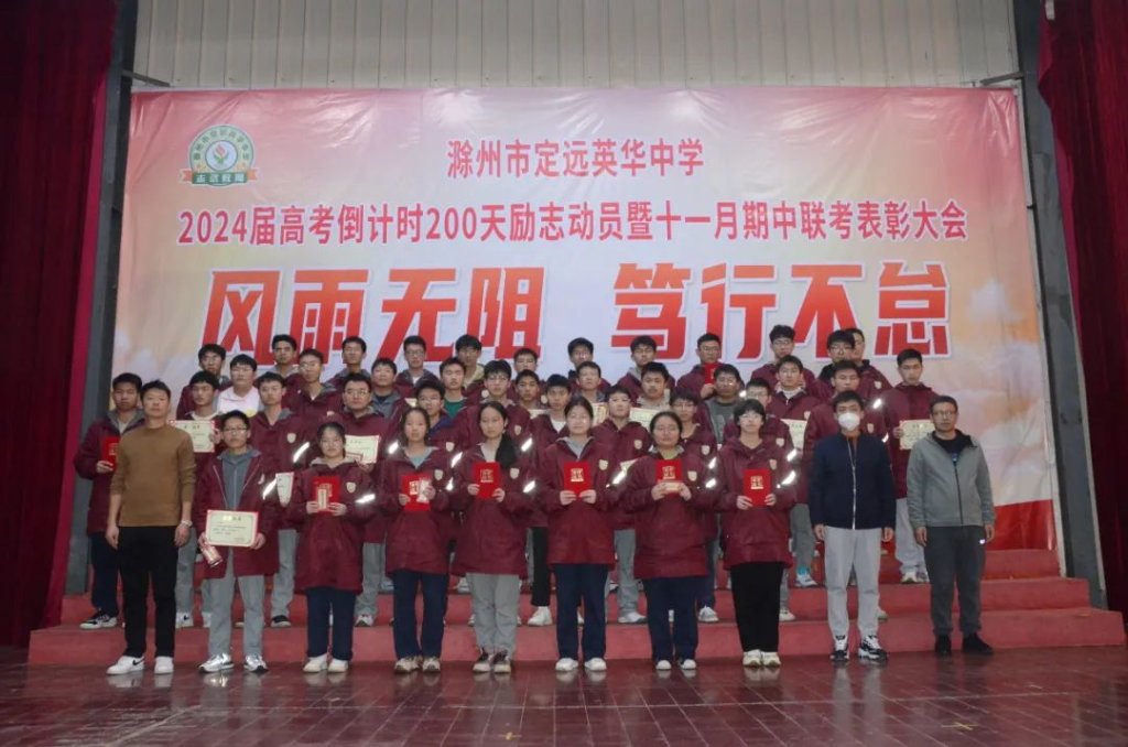 ~ 在青春的航程中,2024届高三学子再次扬帆起航,2023年11月21日晚上8点,滁州市定远英华中学在三号餐厅举行以“风雨无阻 笃行不怠”为主题的高考倒计时200天励志动员暨十一月期中联考表彰大会。此次活动旨在表彰先进,激发斗志,为冲刺高考的征程揭开新的篇章。