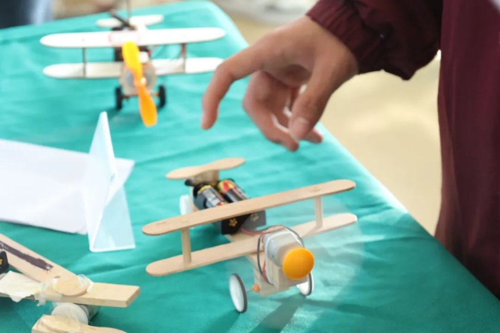 ~ 本次大赛分为多个展区,学生参与率高,作品内容丰富。活动中,有的学生用自己的小巧手将家里的废旧物品变废为宝,制作出精致的小手工。有的学生利用物理知识和化学知识,制作出别具一格的作品。作品内容涉及生活的方方面面,如机械工程、节能环保、水力发电等,每件作品都凝结了小发明家们大胆丰富的科学想象力。