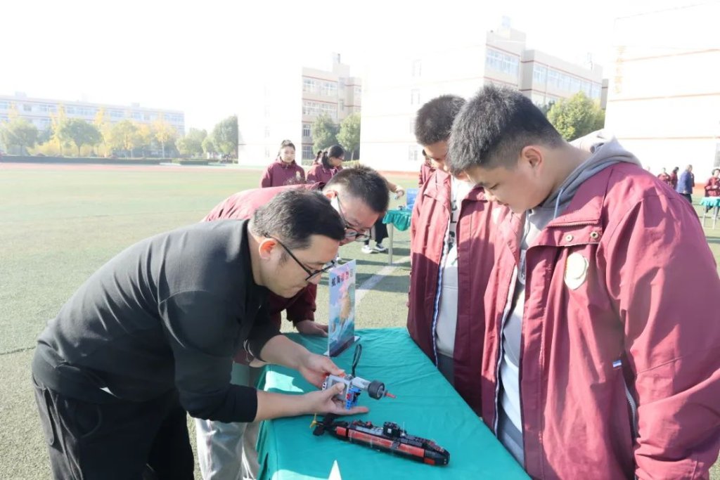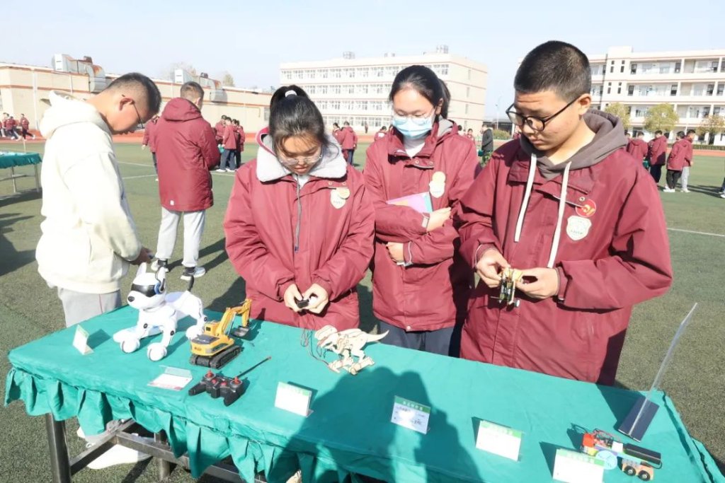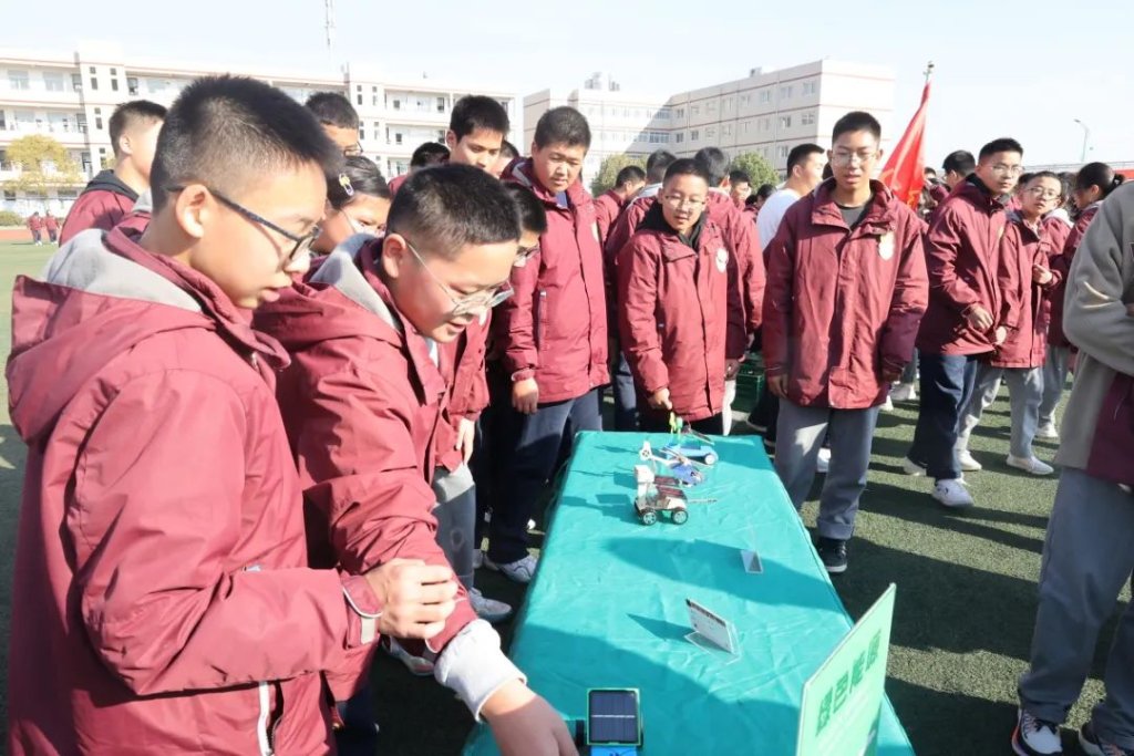 ~ 22日上午,学生科创作品在操场上展示,吸引了在场的人驻足观看。