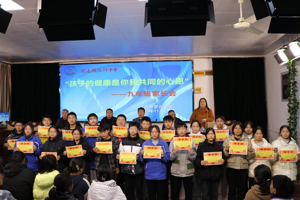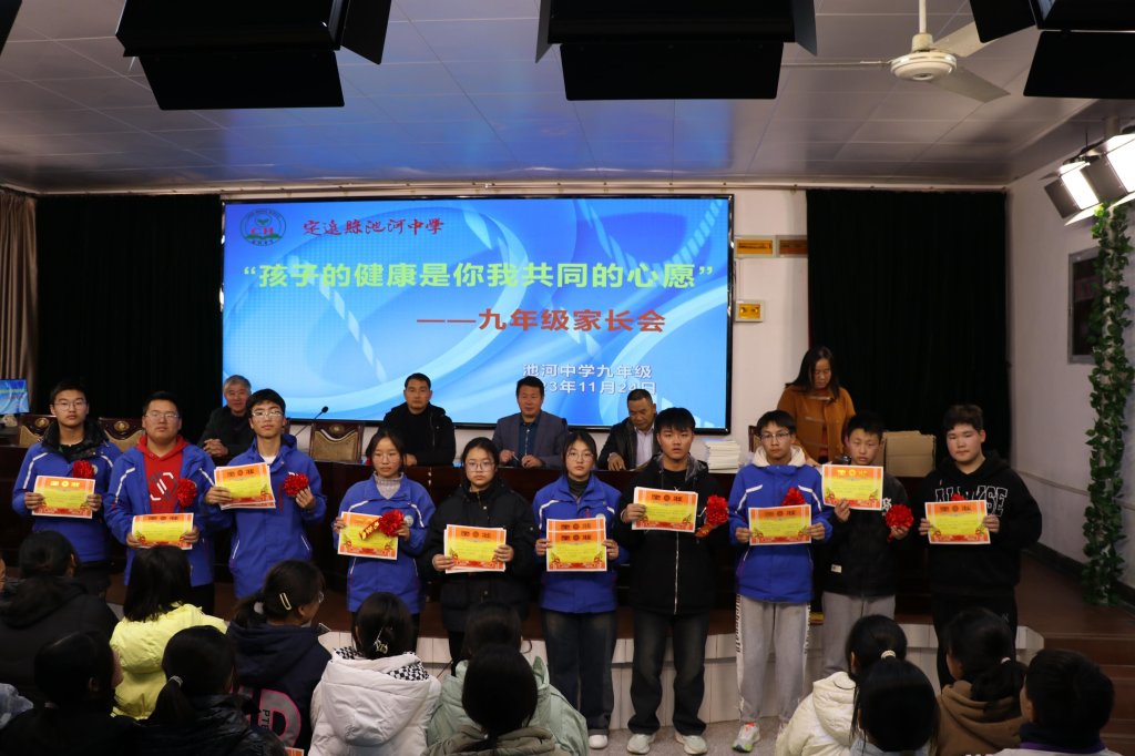 ~ 为进一步增进家长和学校之间的交流,更好地促进学生的健康成长与良好发展,切实做好毕业班工作,确保九年级学生能够明确目标、鼓足干劲、砥砺前行,齐心协力迎战2024年中考,11月24日下午,定远县池河中学在校大会议室召开九年级家长会暨期中监测学情分析表彰会。会议由政教处主任董世刚主持,出席会议的有分管副校长陆培高、九年级师生及家长。会议内容具体,组织紧凑,家长参会积极性高,取得良好效果。