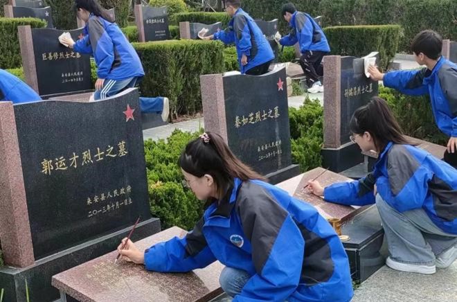 5、开辟校外红色教育基地。(1)皖东革命烈士陵园和学校只有一路之隔,是学校最倚重的红色资源。每年清明节和革命烈士纪念日,学校都组织学生参观皖东革命纪念馆,祭扫烈士墓,缅怀革命先烈,敬献花圈花篮,举行入团宣誓仪式等各种活动;(2)结对驻滁某部队与来安县人武部,开展双拥共建活动;(3)拜祭大刘郢村二师烈士墓,听老人讲革命故事,追寻先烈足迹。