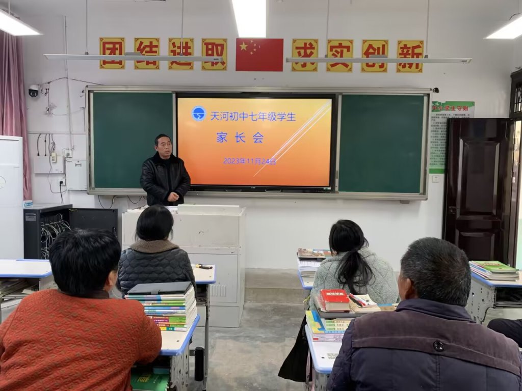 ~ 11月24日下午,定远县天河初中召开本学期第一次全体家长会。此次家长会共分为两个议程:第一个议程是家长学校集中交流学习;第二个议程是分班家长会。