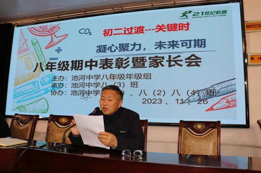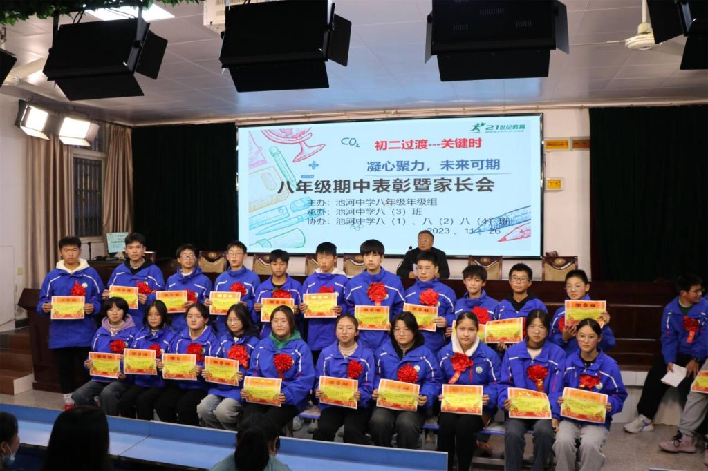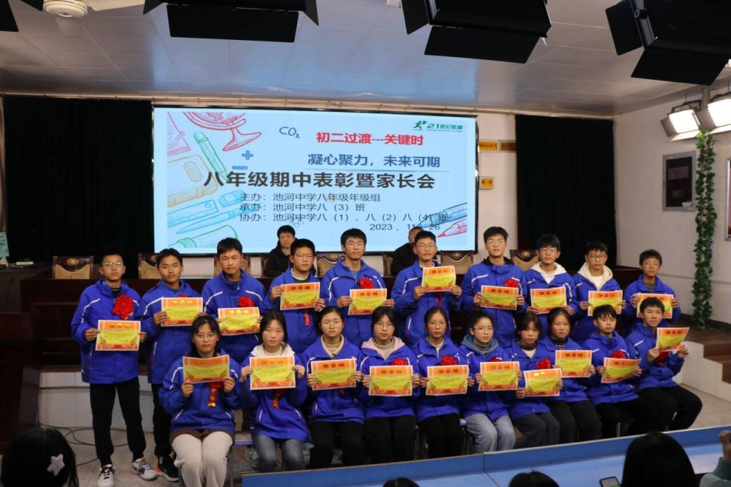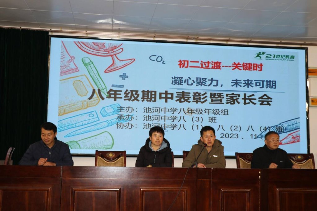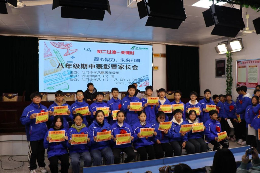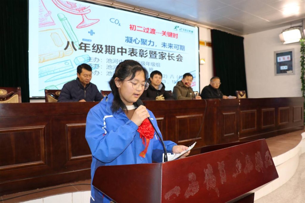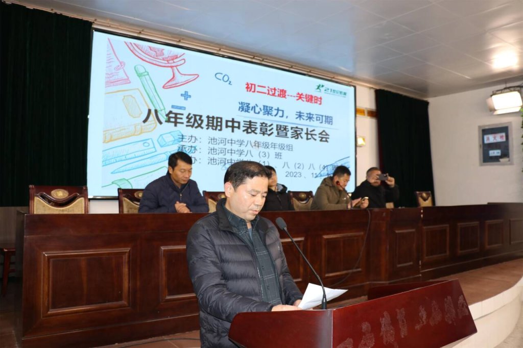 ~ 为促进优秀寄宿生身心健康成长,营造良好的育人环境,引导家长形成正确的教育观,形成家校共建的育人合力,定远县池河中学于11月26日下午召开八年级期中监测前60名学生家长会。会议由八(3)班承办,由优秀学生代表肖梦涵和韦恒共同主持。八年级组织精心安排准备,会议取得圆满成功。