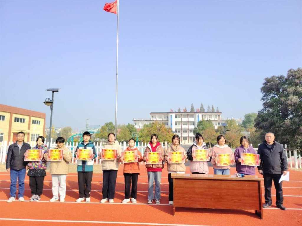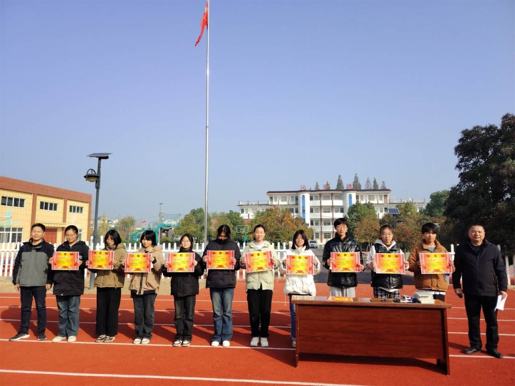 ~ 当天上午,表彰会议在学校运动场举行。一批批获奖学生在同学们热切的目光注视下和热烈的掌声伴随中走上主席台,该校副校长王荣祥、严廷成分别给获奖学生颁发奖状和奖品,摄影老师用手机记录下了这些同学的高光时刻。