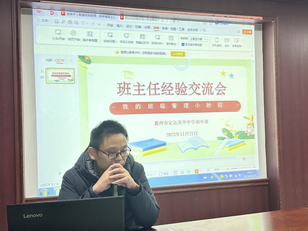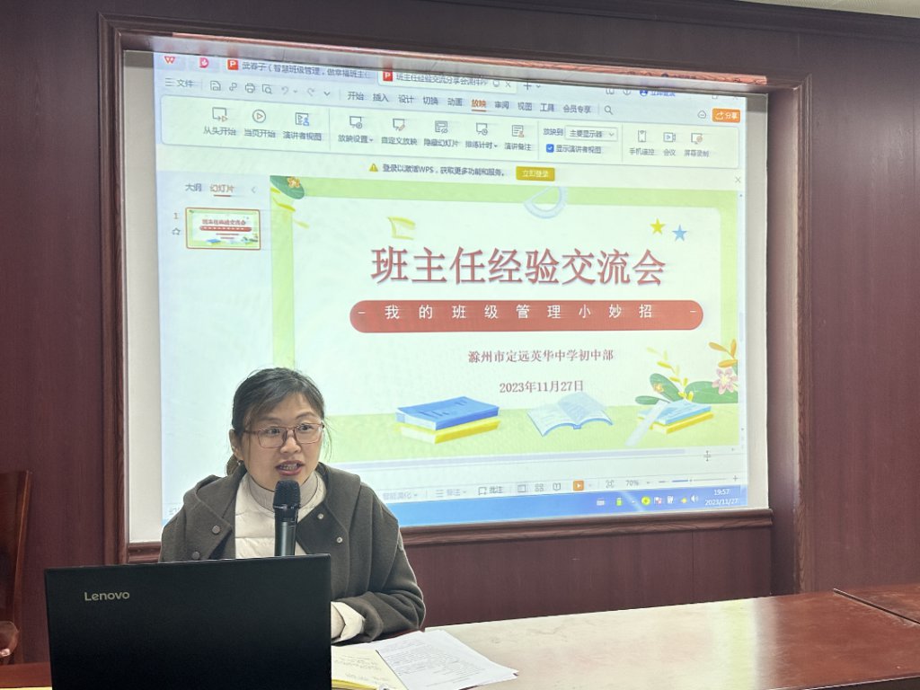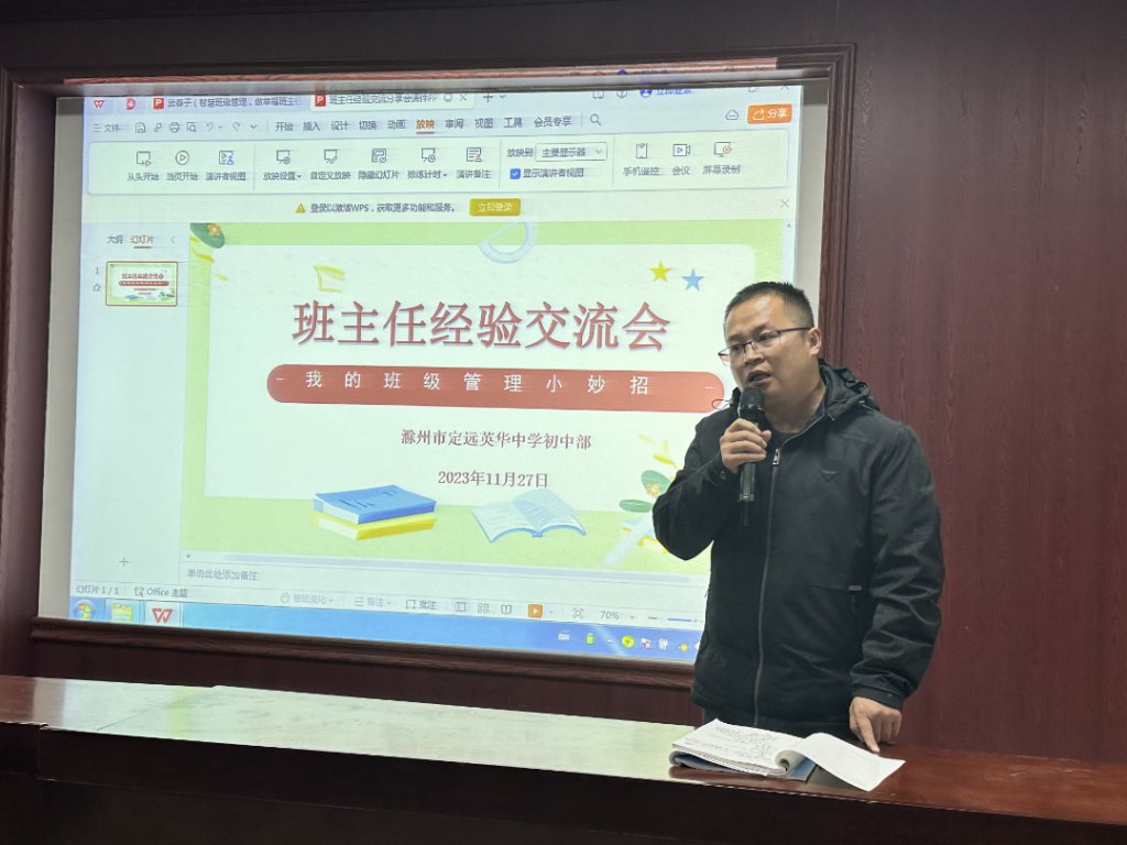 ~ 为促进学校教育教学高质量发展,进一步加强班主任队伍建设,充分发挥班主任在学校教育工作中的重要作用,及时总结和推广优秀的管理经验,分享教育智慧,11月27日晚,滁州市定远英华中学初中部召开了班主任工作经验交流分享会。