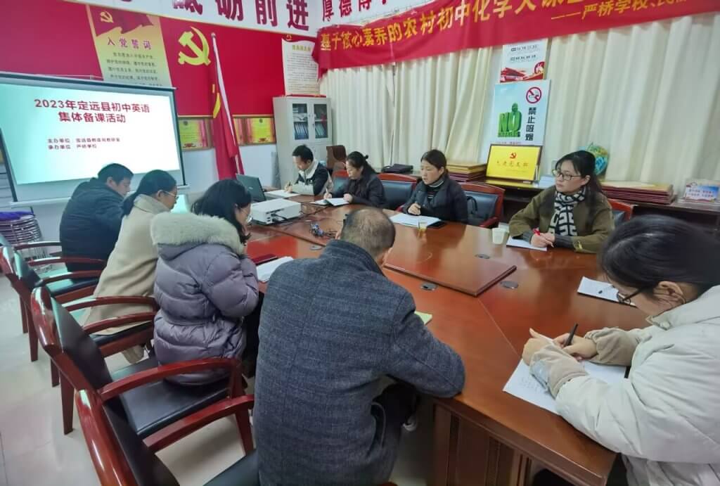 ~ 为提高集体备课质量,提升课堂效益,促进城乡教育教学质量优质均衡发展,2023年11月29日下午,定远县2023年初中英语集体备课活动在严桥学校举行,教体局教研室董云艳带领定远双塘中学郭红梅老师走进严桥学校开展活动,严桥学校全体英语老师参加了活动。