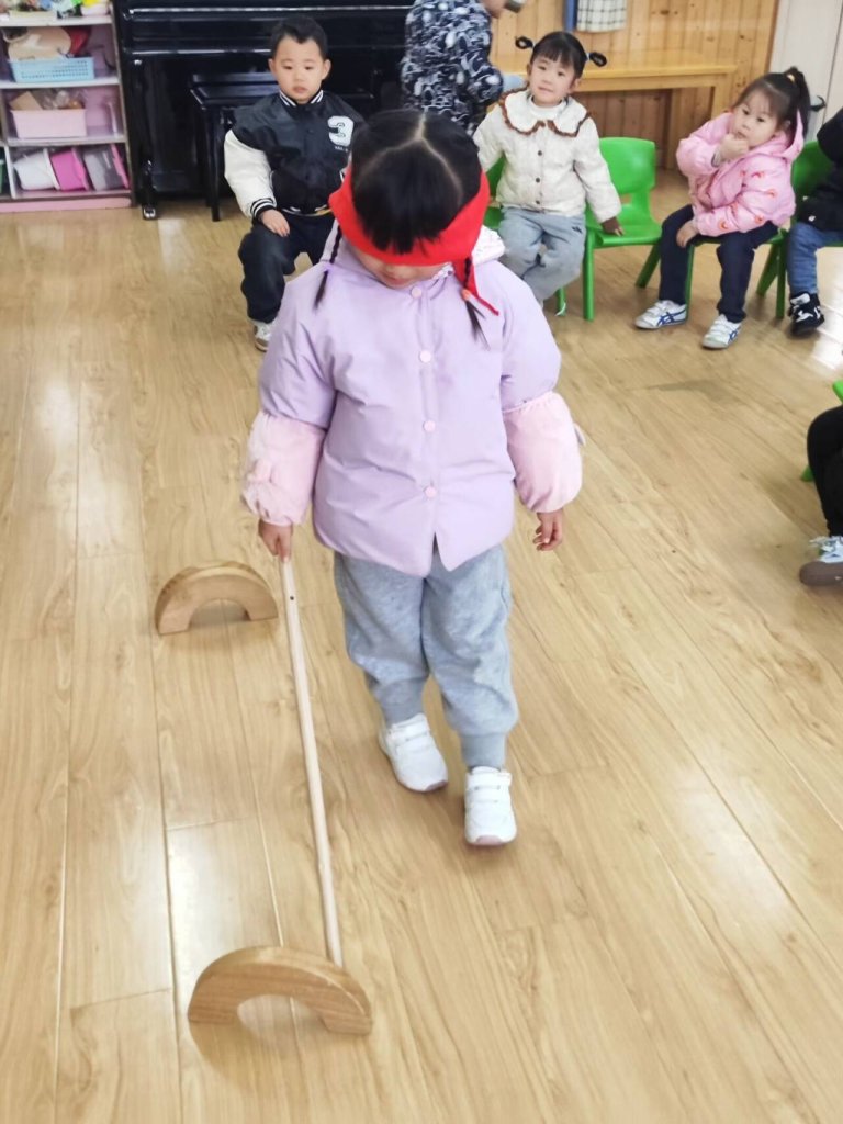 ~ 活动中,黄老师在升旗仪式上带着孩子们了解了每年的12月3日是国际残疾人日,给大家介绍了该节日的意义,并引导幼儿在日常生活中遇到残疾人时要理解他们、尊重他们、关心和帮助他们。随后,在主题教育活动中,各班教师根据幼儿年龄特点引导幼儿观看图片、宣传视频、创设系列情景等形式,让幼儿“蒙眼走路”“捂住耳朵和小朋友交流”“单手穿衣吃饭”“单腿行走”。让幼儿亲身体验了残障人士日常生活中的困难,意识到他们行动不便和渴望帮助的内心需求,萌发出关爱残障人士、热爱生命的情感。