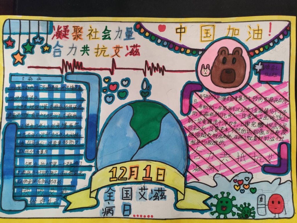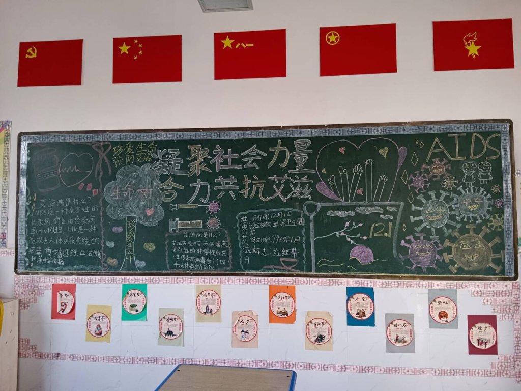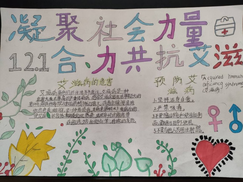 ~ 活动中,该校首先利用校园电子屏、红领巾广播站等阵地宣传预防艾滋病健康教育知识,营造全员积极参与艾滋病防控工作的良好氛围。接下来,各班级陆续召开艾滋病知识健康讲座,班主任在讲座中详细介绍了艾滋病的病因、传播途径、危害以及如何防治等方面的知识,引导学生认识养成健康的生活习惯的重要性。同时,班主任还号召同学们制作以“凝聚社会力量,合力共抗艾滋”为主题的黑板报和手抄报。此外,该校发放了致全校学生预防艾滋病的倡议书,呼吁少先队员增强预防艾滋病的主动性和自觉性。