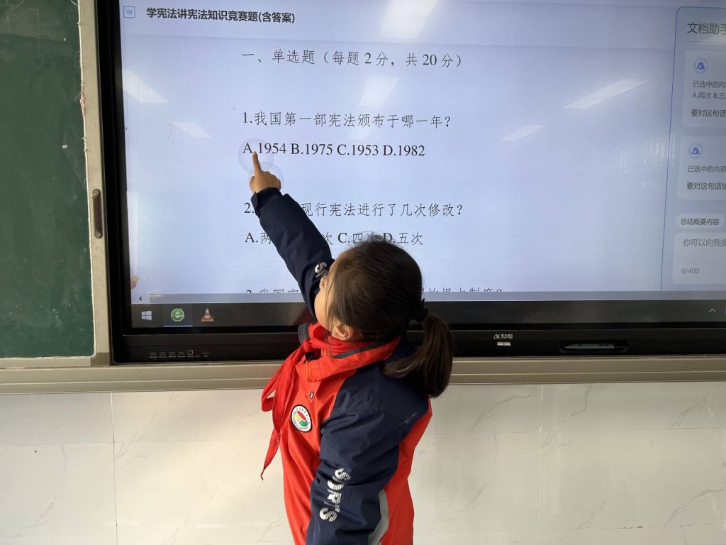 ~ 接下来,各班级陆续召开主题班队会,中年级组织开展宪法竞赛、主题黑板报比赛。不同形式的主题活动让全体少先队员感受颇深,纷纷认识到在今后的工作学习中,要加强对法律法规知识的学习。同时,在工作学习中将会大力宣传弘扬法治精神,学法、守法、用法,共同营造和构建和谐平安校园。(图文:赵悦 审核:罗培齐)