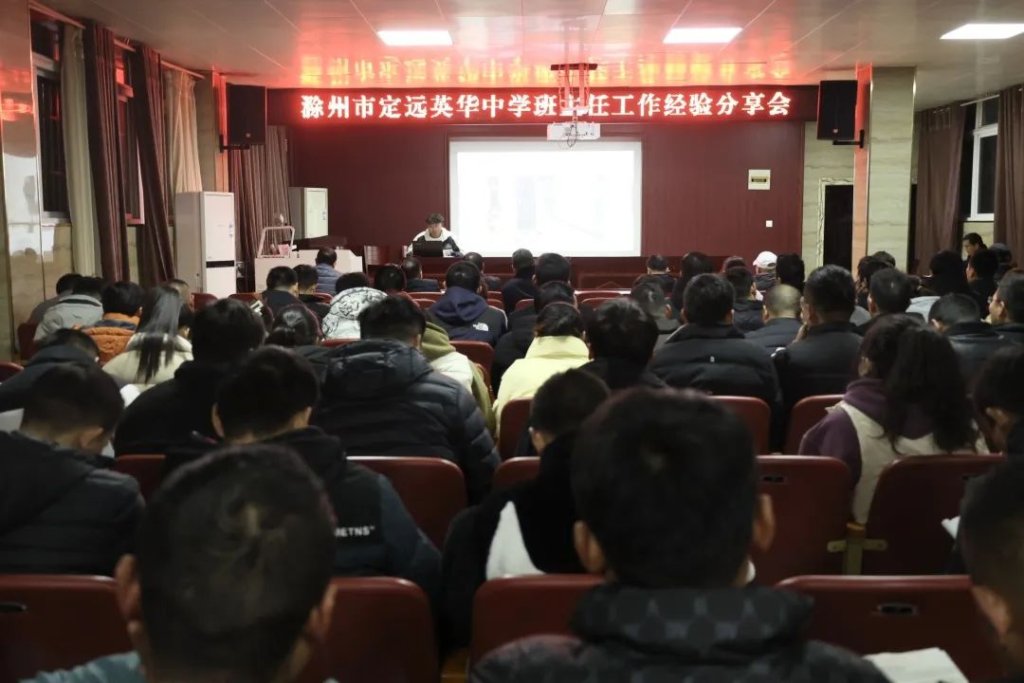 ~ 为进一步加强班主任队伍建设,充分发挥班主任在学校教育和管理工作中的重要作用,及时总结和推广班主任工作先进经验,发挥典型引领作用,11月29日晚,滁州市定远英华中学在六楼会议室召开班主任工作经验分享会。