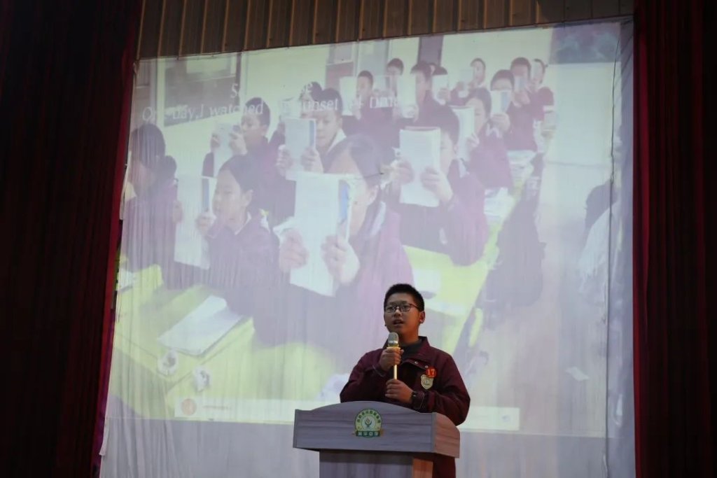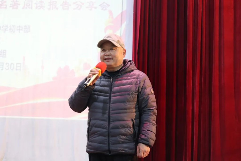 ~ 颁奖仪式结束后,初中部校长王新生对此次活动进行总结,告诉同学们书籍是人间的法宝、是人类的明灯,读书能使贫者富、富者贵、愚者智、黯者明、贱者尊,俗者因书而圣。读书要读好书,要明确目标。